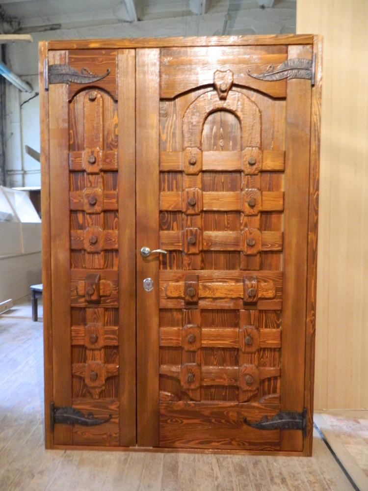 В качестве отделки используются самые разные материалы — МДФ, натуральный шпон, искусственная кожа, ламинат. Декорируются панели кованными решетками, литьем, филенками, резными элементами.